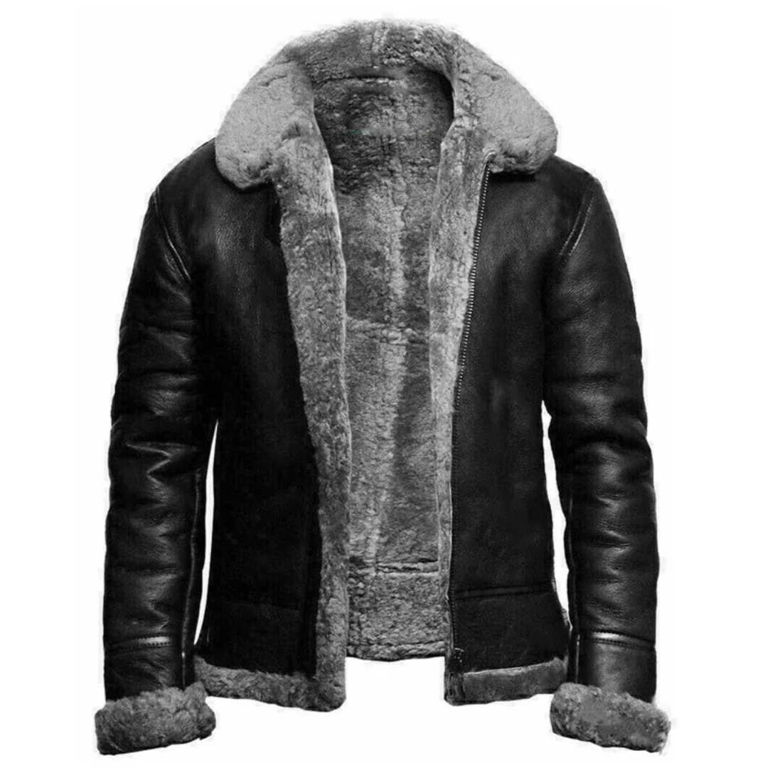 WARME ZWART KUNSTLEREN JAS MET SHERPA VOERING